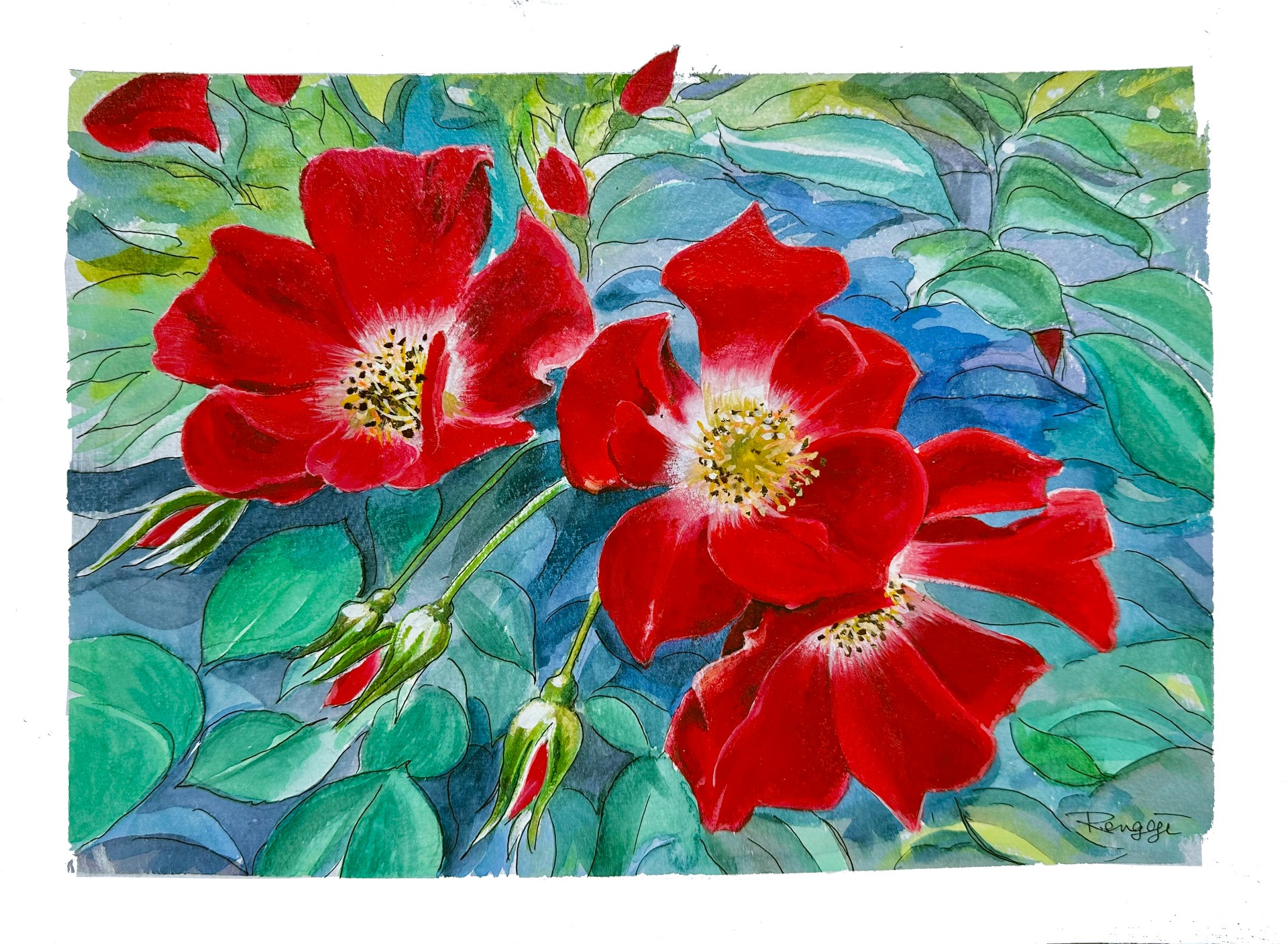 Roses give us joy every spring and autumn.   F4  acrylic painting