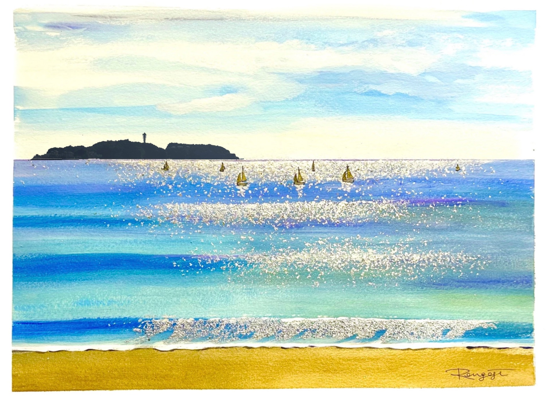 Enoshima Nishihama Beach. A gift of color from the sea.    F6 watercolor painting
