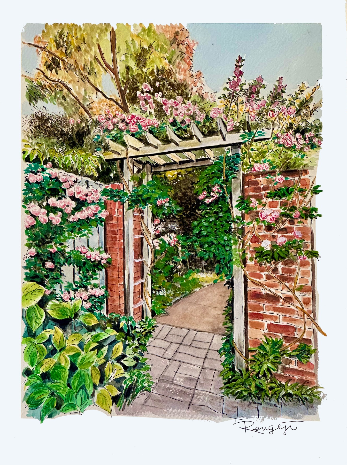 横浜のイングリッシュガーデン F4号 水彩画  Yokohama English Garden