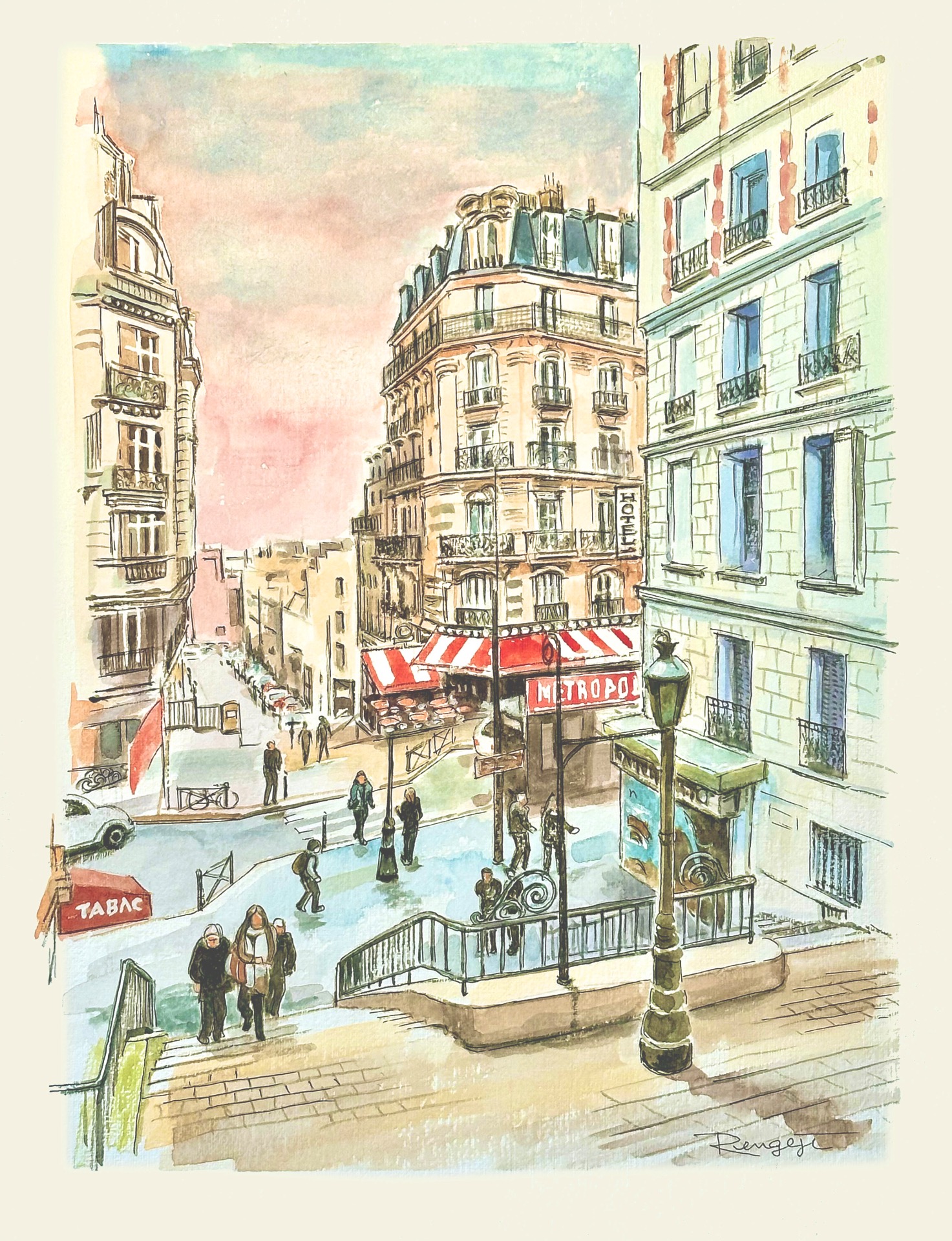 モンマルトルからの帰り道、やはりパリは絵になる。 F6号 水彩画
