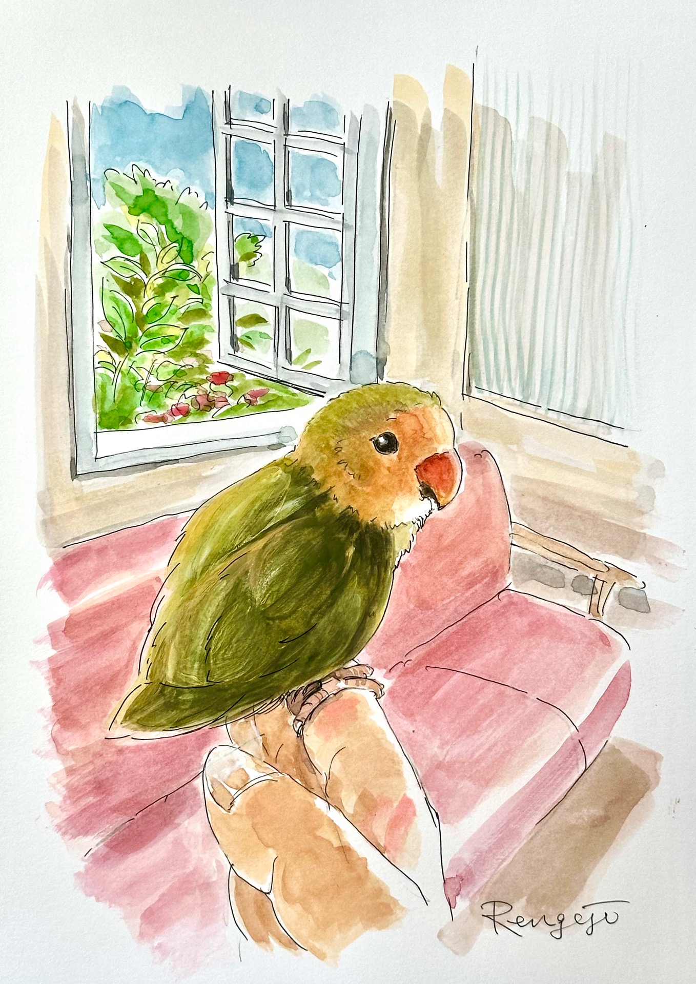 187)「コザクラインコのコロちゃん」 Peach-faced Lovebird