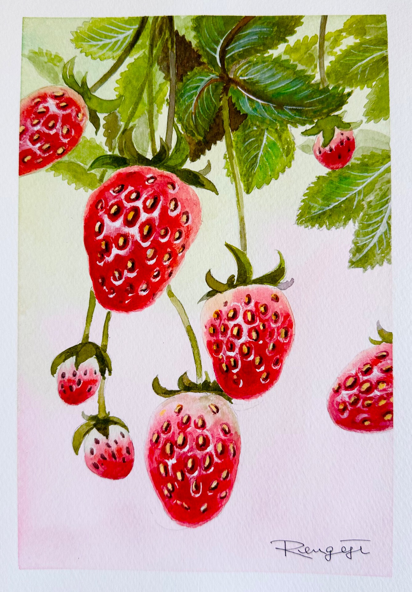今年は暑かった分、イチゴが美味しかった。 F2号 水彩画