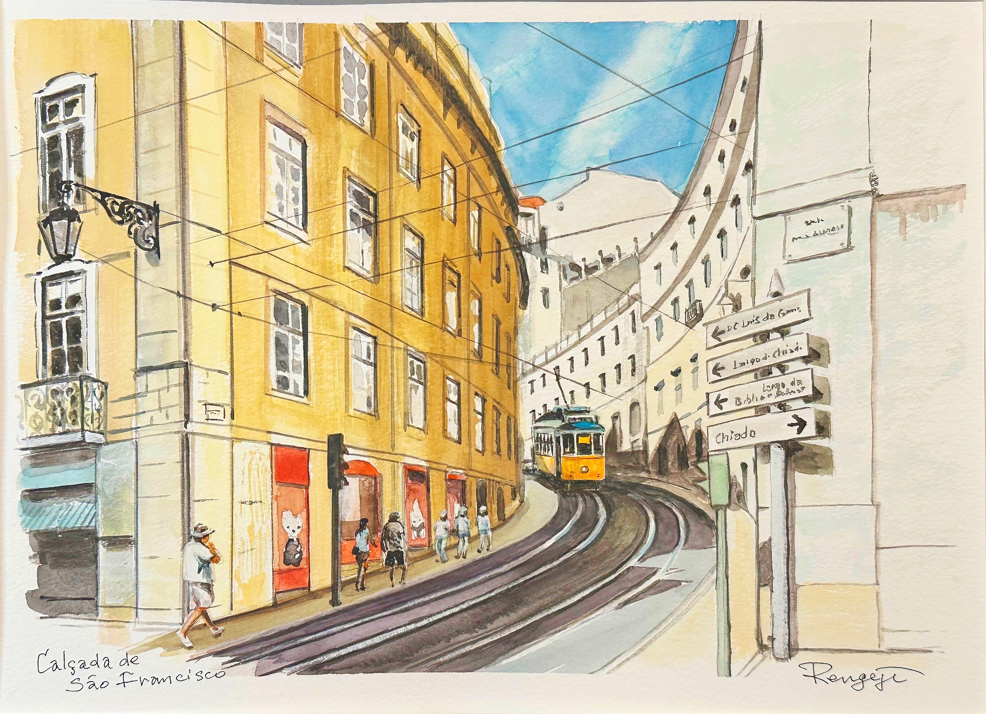 坂と曲線の美しい街並。 F4号 水彩画 A beautiful townscape with slopes and curves. You need strong legs.